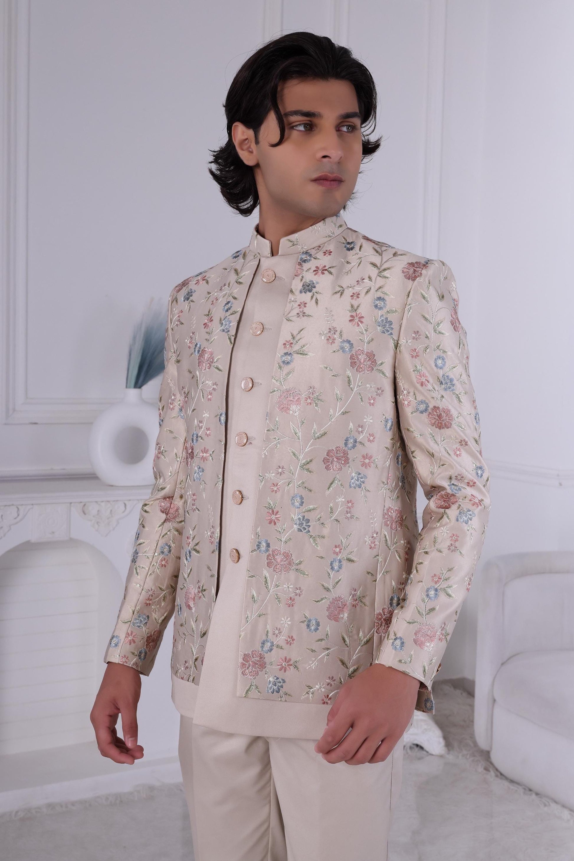 Cream Embroidered Sherwani for Men – Elegant Floral Design Indian Wedding Outfit Custom Tailored